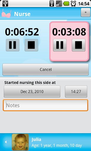 然後再2個月,我就覺得這App對我而言沒用了。怎麼說?一天之中,最常紀錄的就是喝奶時間和份量了,但是哺餵母乳的我後來發現計算艾璇左右兩邊的喝奶時間...實在很蠢啊!!初期被某些blog文章誤導,說親餵一邊最好餵20分鐘再換邊,所以我還真傻傻地算時間,就算半夜躺餵時很愛睏,但每次掏奶時還是不忘把Baby ESP Trial點開算時間...蠢,真是太蠢了!