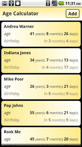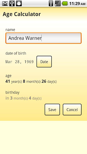 我幾乎把Google Play裡面名叫Age Calculator的App都下載試用過,有的廣告很煩,有的步驟繁雜更煩;但我推薦的這一款用法超級簡單,唯一唯二的缺點就是...界面太普通且不支援中文;但這對於我需要的功能而言不是重點,所以可接受(以下照片來自Google Play中Age Calculator應用程式螢幕截取畫面)。